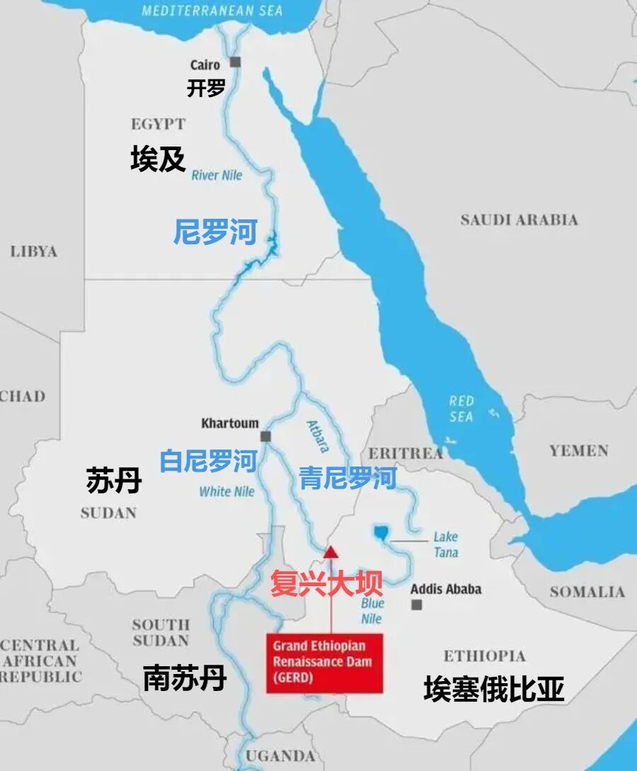 然而,进入21世纪以来,埃塞俄比亚(以下称埃塞)一直试图在尼罗河的上游支流—青尼罗河建造一座巨型大坝。如果这座大坝得以建成,埃塞理论上可以控制流向埃及的尼罗河水量,埃塞将大概率掌控埃及的水资源。