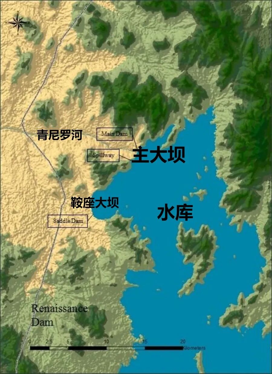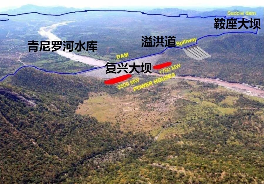 经过勘探和设计,最终埃塞选择在靠近苏丹边境地区的青尼罗河上修建大坝。大坝高145米,长1780米,蓄水量可达740亿立方米(三峡水库约为400亿立方米),预计耗资48亿美元,设计发电量为6000兆瓦。