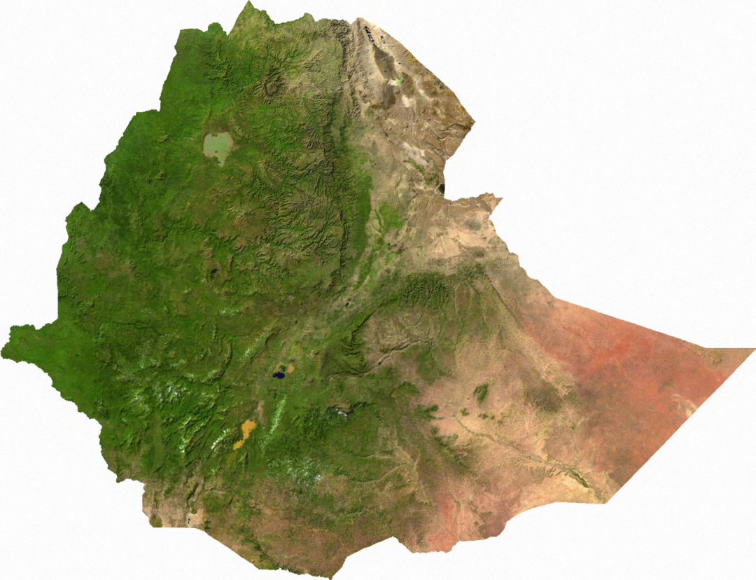 ▲埃塞俄比亚卫星图。西部气候较为湿润,河流湖泊也主要分布在这一地带