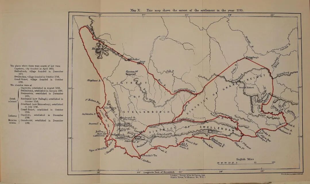 ▲荷兰在非洲南部的殖民地,1795年达到最大范围