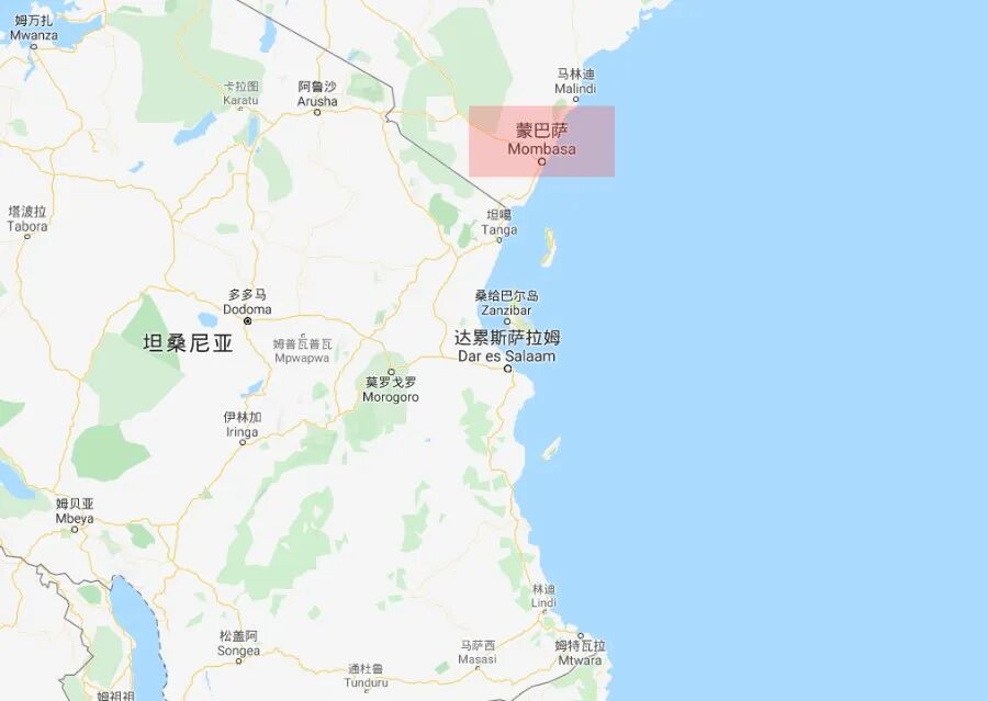 ▲蒙巴萨(现肯尼亚第二大城市)的位置