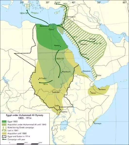 ▲穆罕默德·阿里统治下埃及的对外扩张,苏丹被其征服