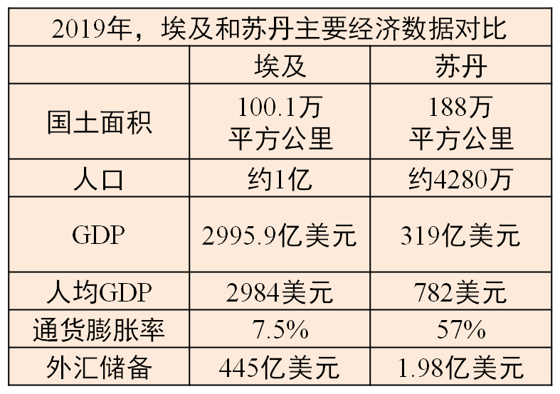 ▲2019年,埃及和苏丹主要经济数据对比,可见埃及优势明显