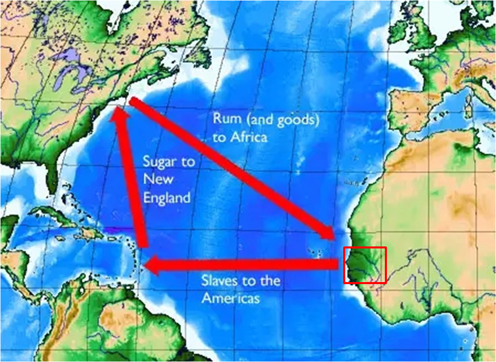 ▲塞内加尔河和冈比亚河沿岸(红框处)在黑奴贸易时代扮演了重要角色