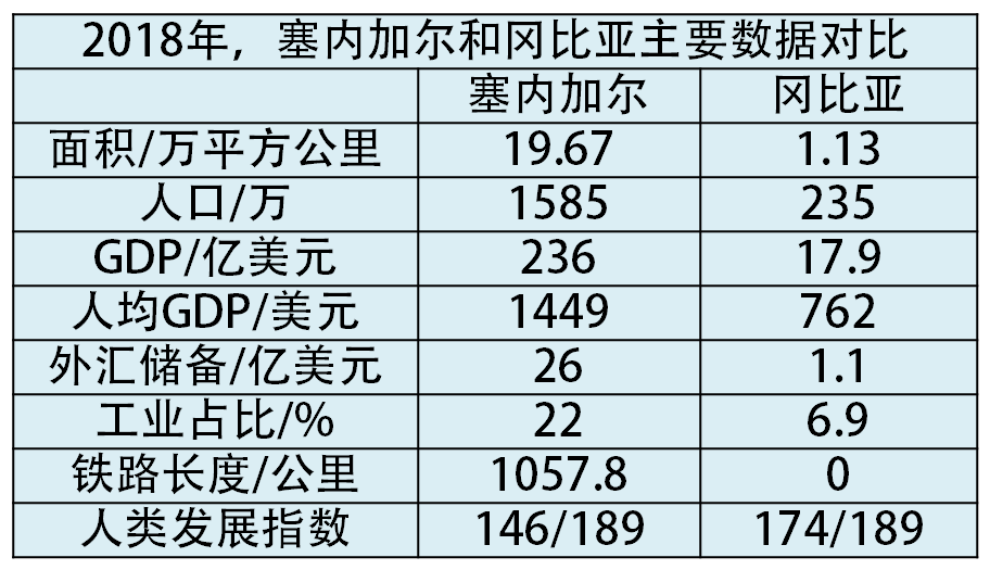 ▲2018年,塞内加尔和冈比亚主要数据对比,可见两国发展程度差距明显