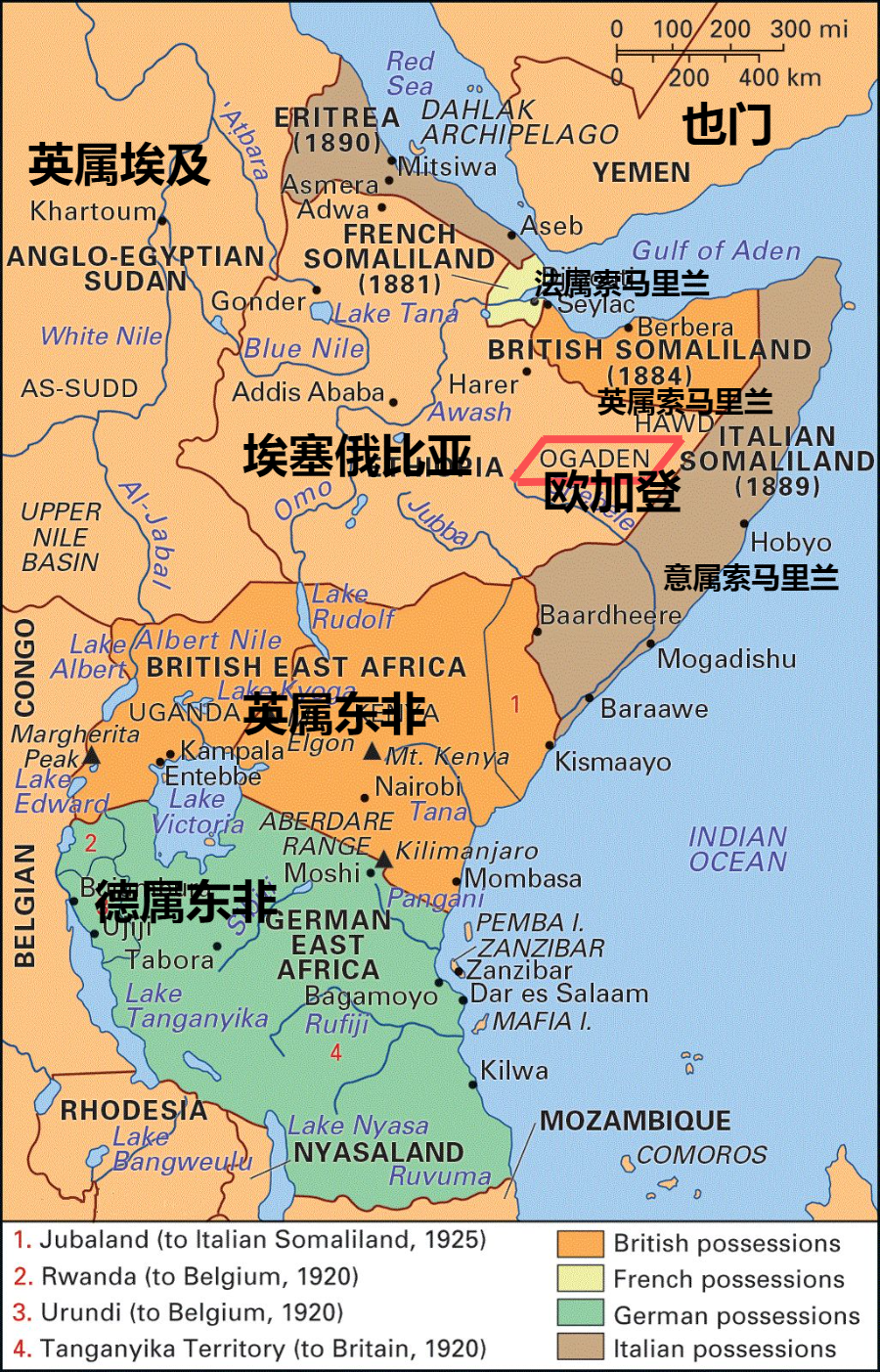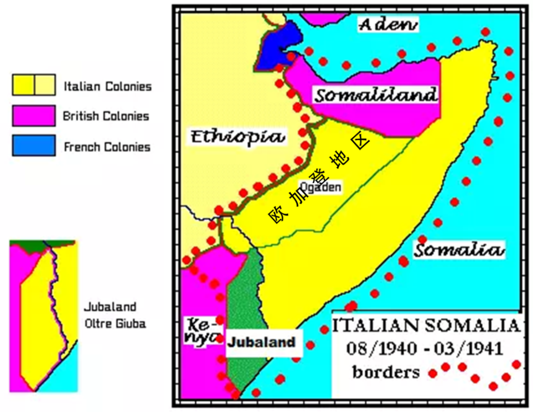 ▲英法意对索马里人聚居地的分割,红框处是欧加登地区