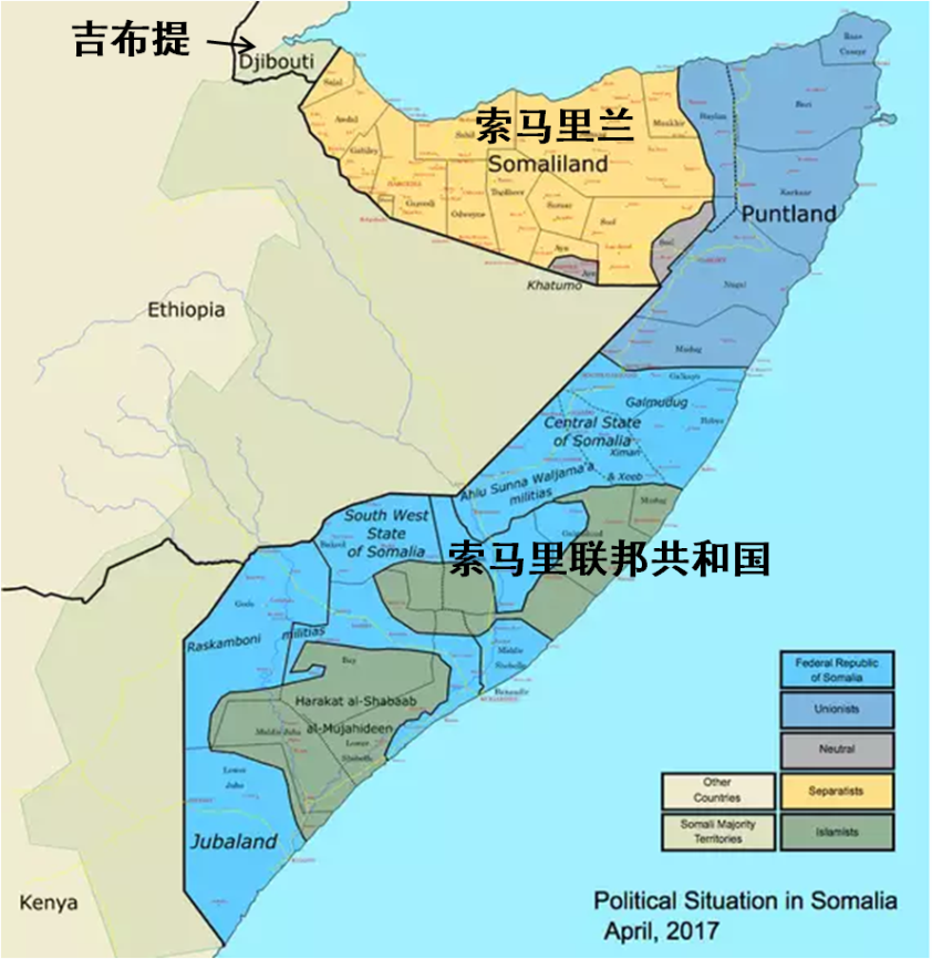 ▲被一分为三的索马里:吉布提,索马里兰和索马里联邦共和国