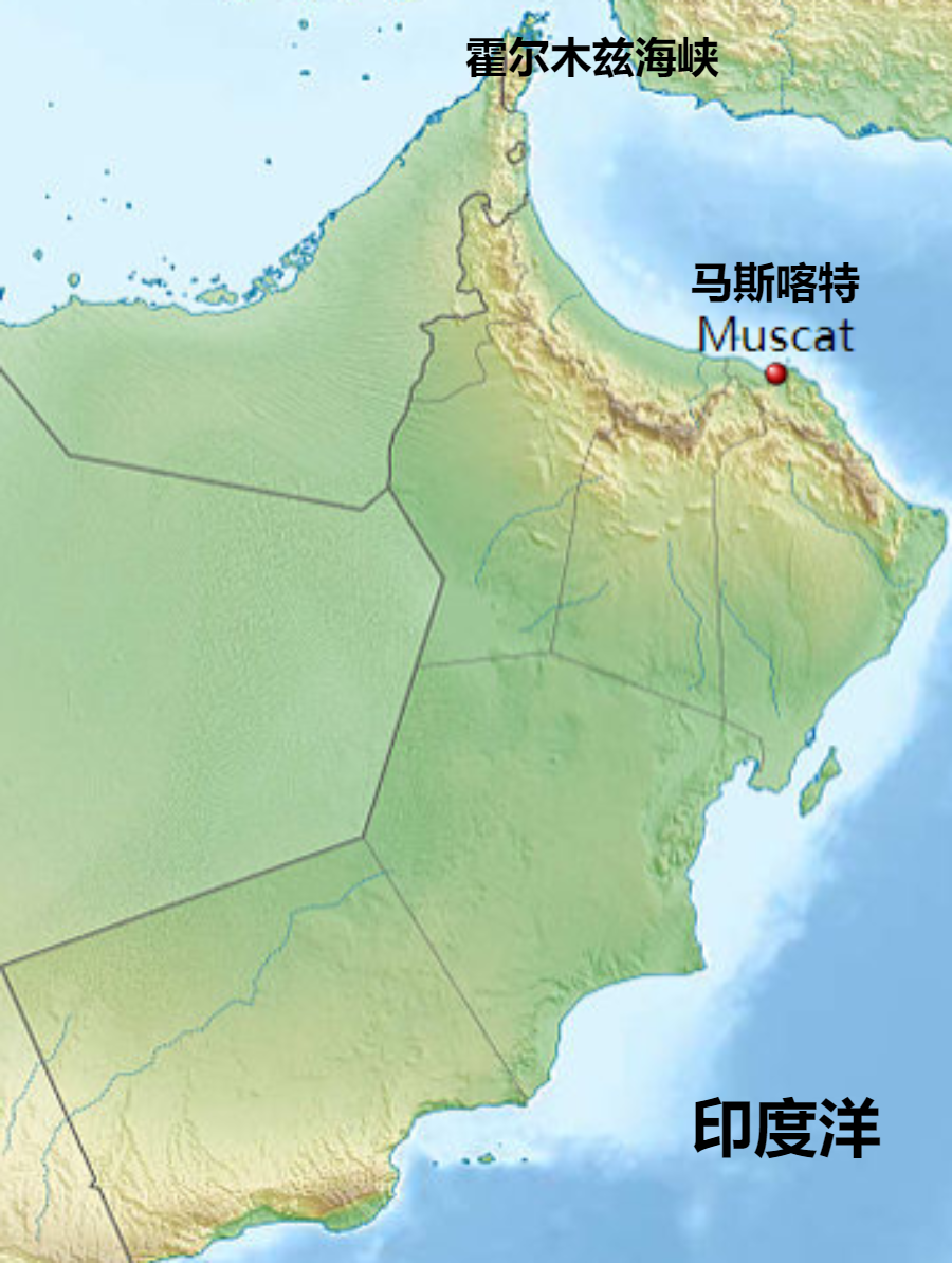 ▲马斯喀特三面环山,扼守霍尔木兹海峡