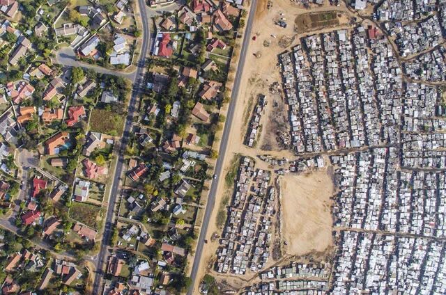 ▲被誉为彩虹之国的南非,白人富豪区(左)和黑人贫民区(右)依然泾渭分明