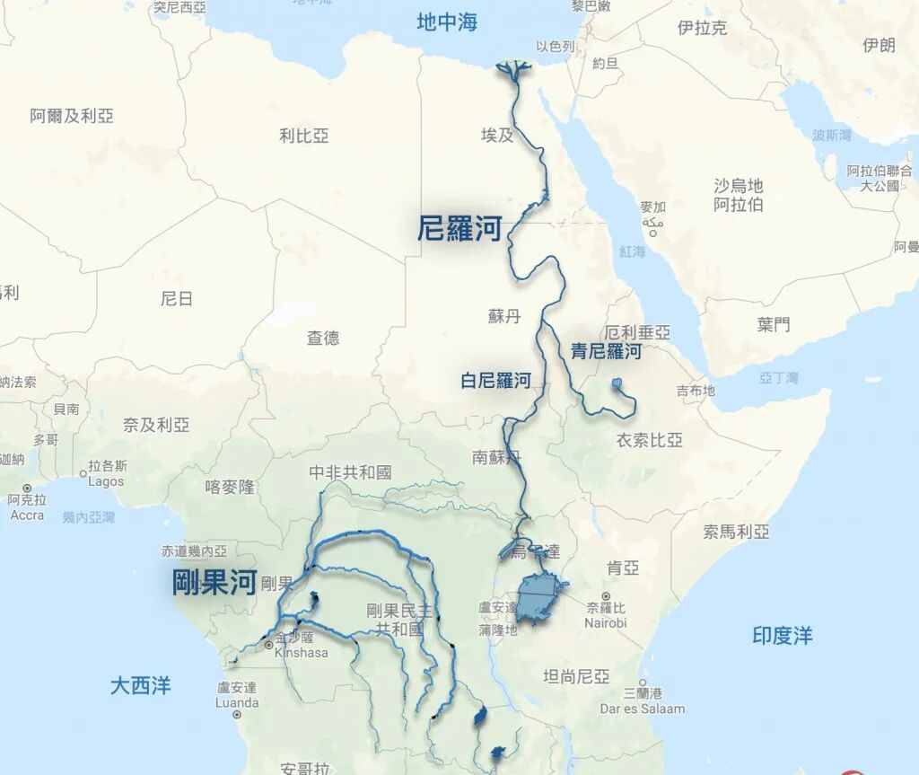 刚果河干流长度4700公里,流域面积达414万平方公里,流量仅次于亚马逊河居全球第二位。刚果河流域覆盖了刚果盆地,这里有仅次于亚马孙雨林的全球第二大雨林。