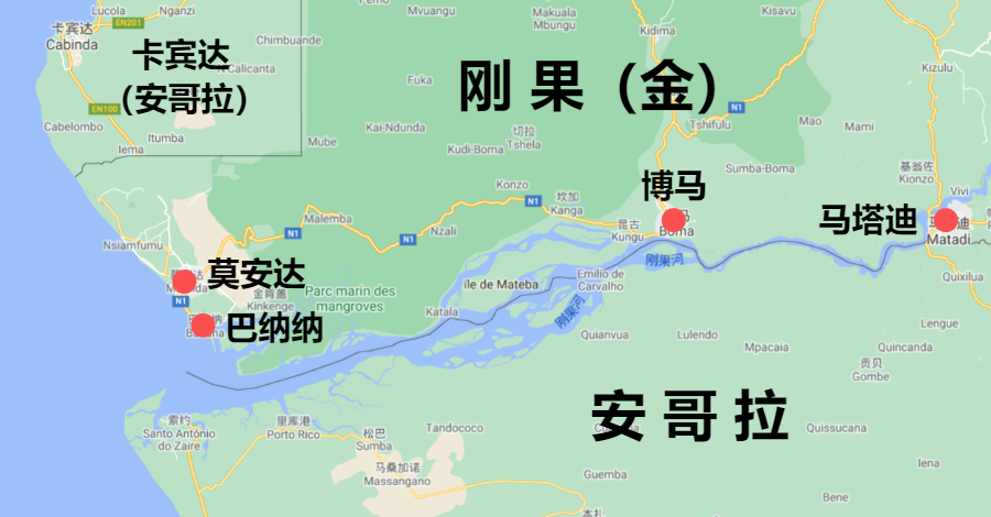刚果(金)的出海口两端,被安哥拉本土和安哥拉的飞地卡宾达省“夹击”。与安哥拉相比,刚果(金)面积是安哥拉的近2倍,人口是其近3倍,但海岸线长度仅为安哥拉的2%。