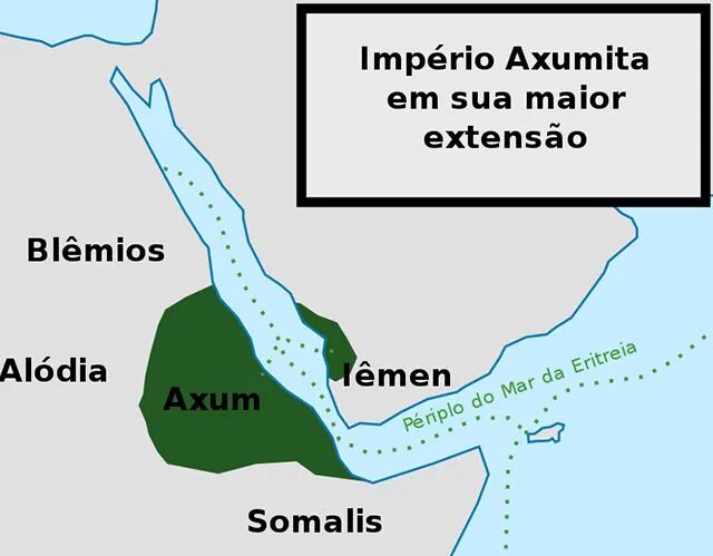 帝国首都位于阿克苏姆城,位于今天的埃塞俄比亚的提格雷州境内。来自三大洲的货物在此处交易,使帝国成为当时最强大和繁荣的国家之一,疆域一度延伸到红海两岸和阿拉伯半岛。