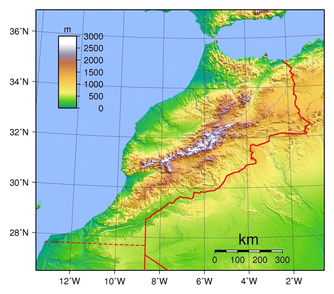 虽然位于非洲北部的撒哈拉沙漠是地球上最不适合生存的地方之一,气候条件非常恶劣,但是摩洛哥斜贯全境的阿特拉斯山脉(最高峰海拔4167米)阻挡了沙漠热浪的侵袭。