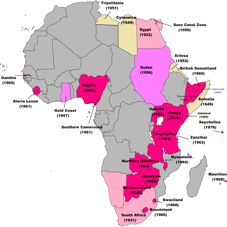 20世纪50年代中后期起,大规模的去殖民化浪潮席卷了非洲,大部分非洲国家基本通过独立战争、和平协议、全民公投等形式相继获得独立。