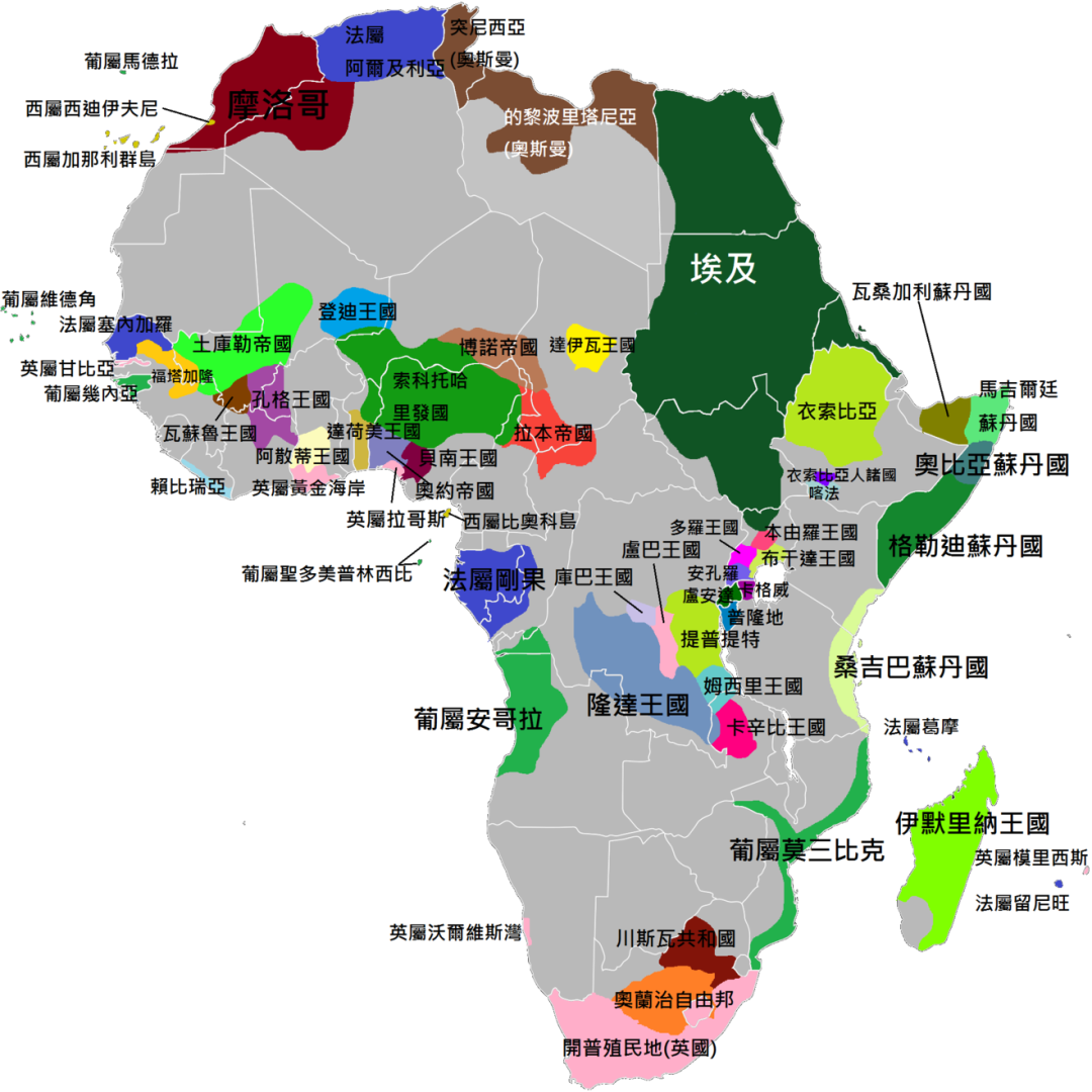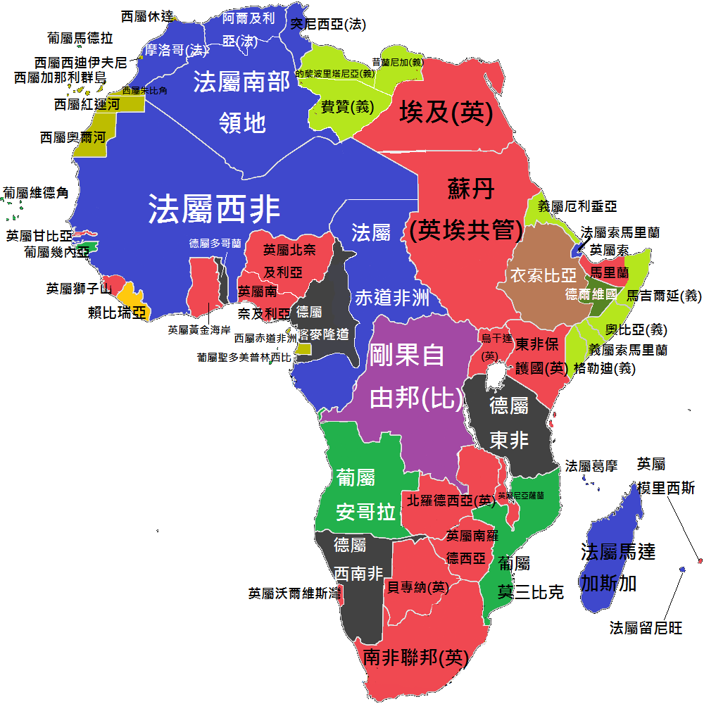 之后的三四十年里,法国在几乎在非洲建立起东西贯通的殖民地,控制非洲35%的领土。英国企图打造一条南北走向的非洲走廊,控制着非洲近30%的领土。
