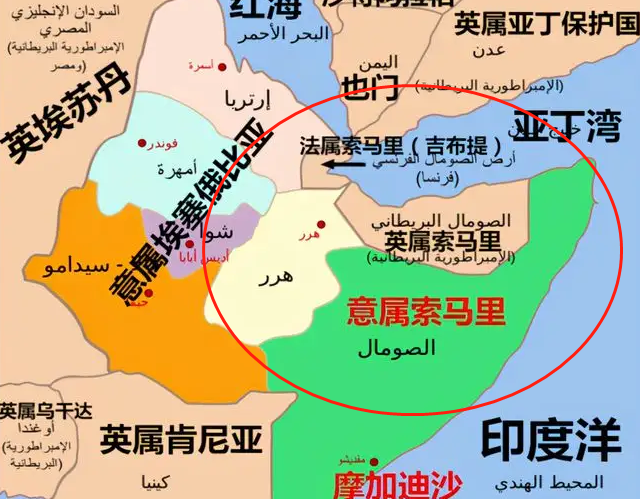 在二战中,隶属轴心国阵营的意大利被盟军打出了北非,厄立特里亚与意属索马里这两块地被暂时转交给了英国。前者经联合国决议回归了母国埃塞俄比亚成为联邦自治体,而后者则与英属索马里进行了合并。