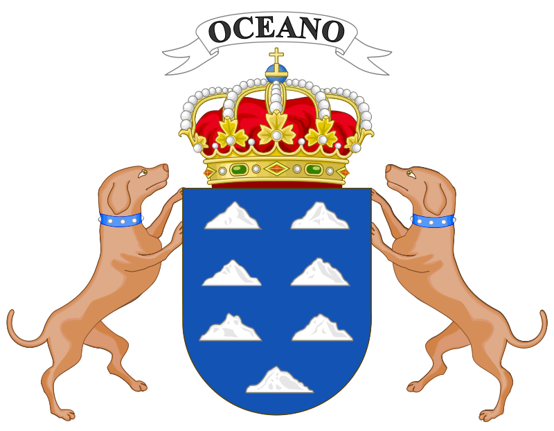 ▲西班牙加那利自治区的区徽,狗代表当地岛屿的名称跟狗有关