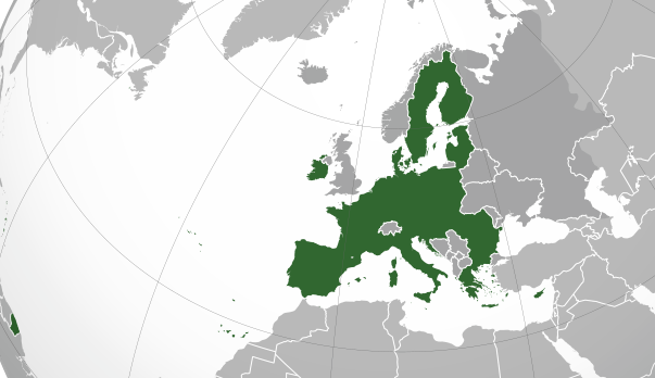 ▲欧盟地图(绿色),包括西班牙的加那利群岛