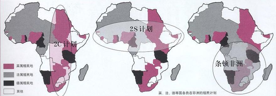 ▲法国2S计划、英国2C计划、德国“条顿非洲”计划