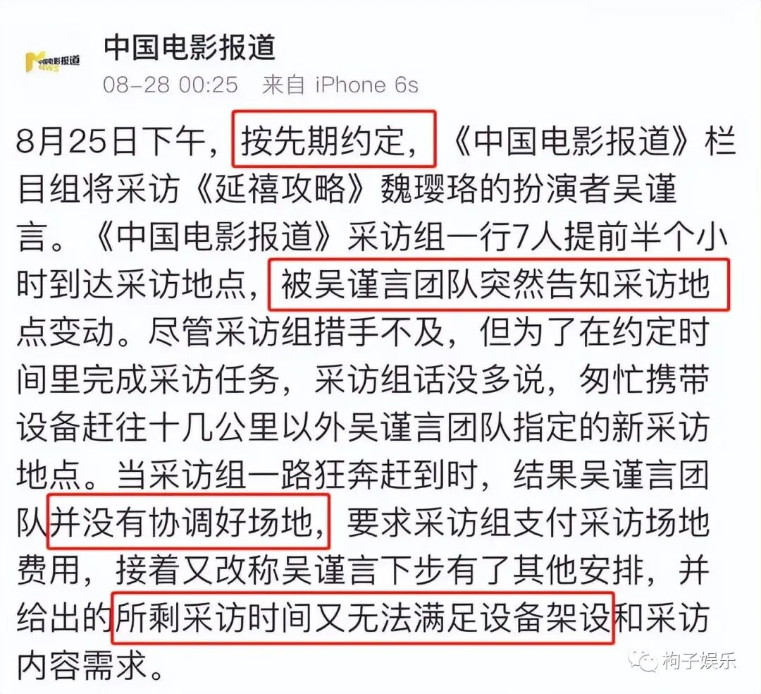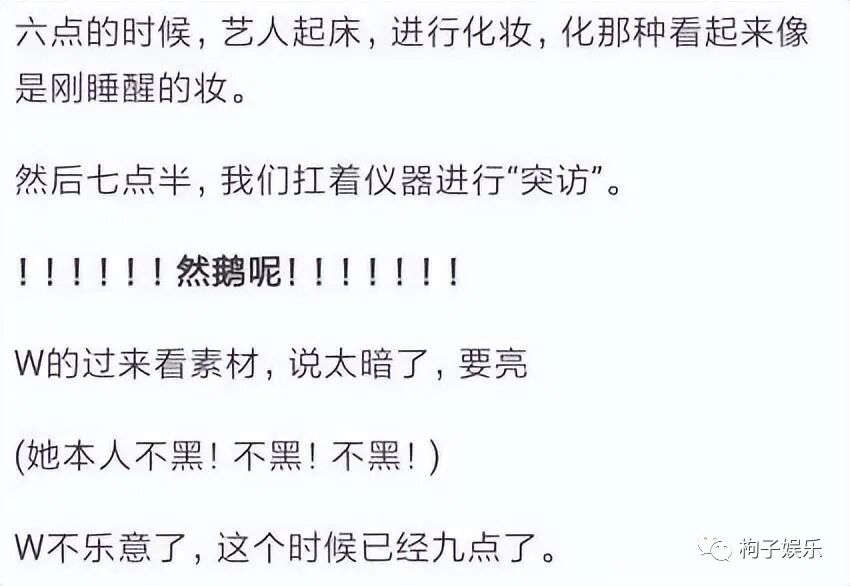 但事情已经走到这一步了,没办法,等吧,一个小时后终于开拍了,开拍期间吴谨言竟然还时不时的耍起了小性子,最终把采访时间拖到了中午才完成。