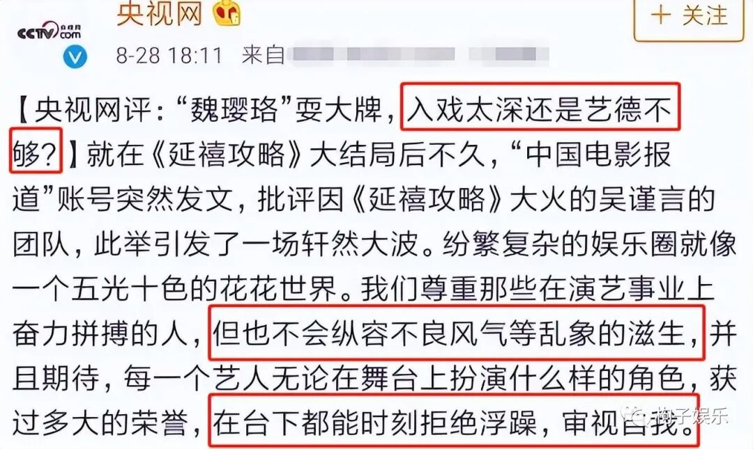 于是央视也站出来发文批评吴谨言这种“耍大牌”行为,并且着重批评吴谨言没有艺德。