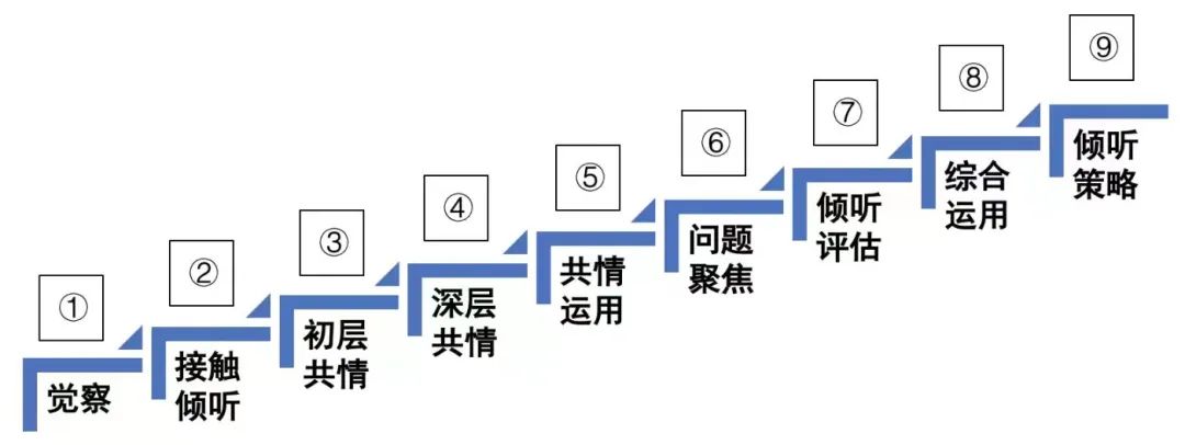 你将按照“倾听师成长阶梯”9个能力等级的学习,逐渐内化倾听必备的核心技能。每一级阶梯的进步,都代表着倾听师底层能力的成长。