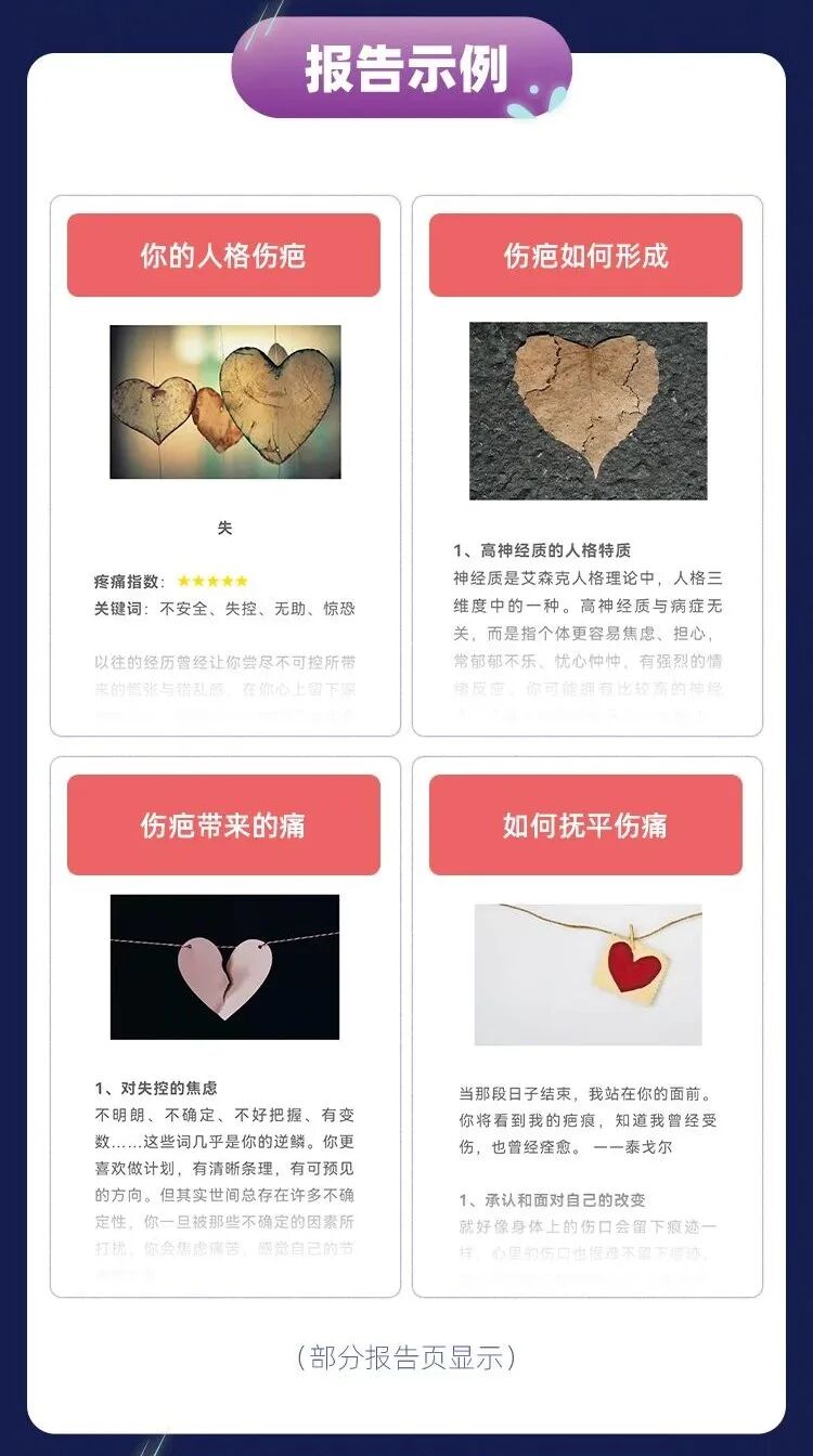 为了帮你发现“人格伤疤”,壹心理专业研发团队集体研发出「人格伤疤测试」,将: