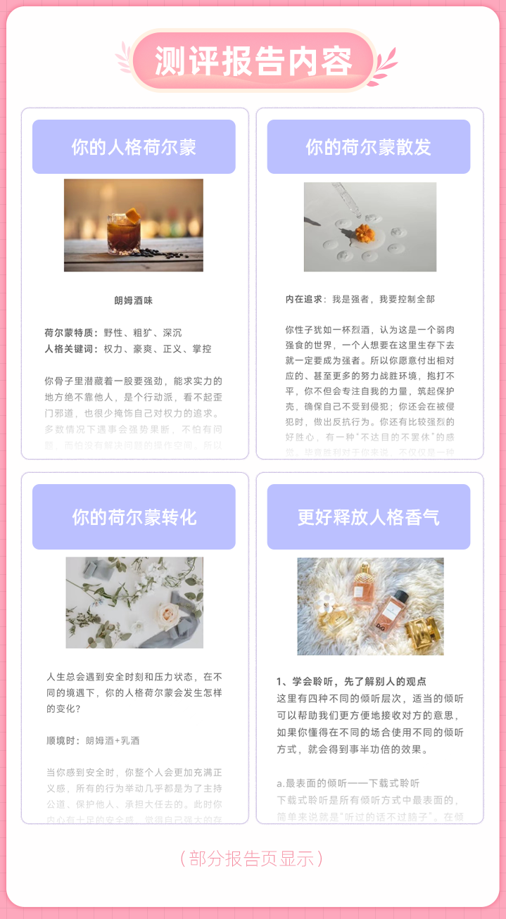 因为先天激素和后天经历的差异,每个人生成的荷尔蒙性香也有所不同,如果你还希望有更深入的个性化分析,我们推荐你可以和咨询师进行1V1深度咨询~