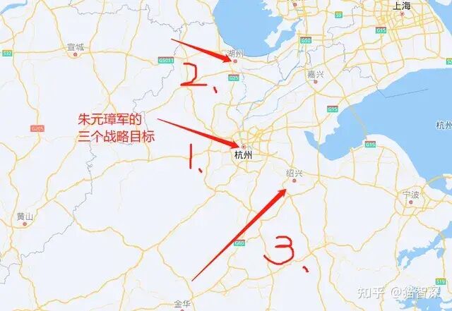 1359年一月到六月,朱元璋在金华待了半年,亲自部署主持浙江攻略。其战略目标有三个,即张士诚占据的浙江最富庶地区杭州、绍兴和湖州。