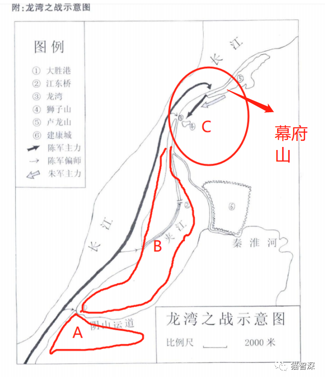 而这个区域最关键点即龙湾背后狮子山(今南京长江大桥附近的狮子山风景区)! 此地西扼河口,东瞰平川,必然成为陈氏水陆两军的合击目标。