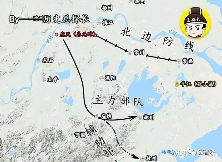 江南张士诚以苏州为核心,以巨城湖州和杭州为翼,在三地屯以重兵。