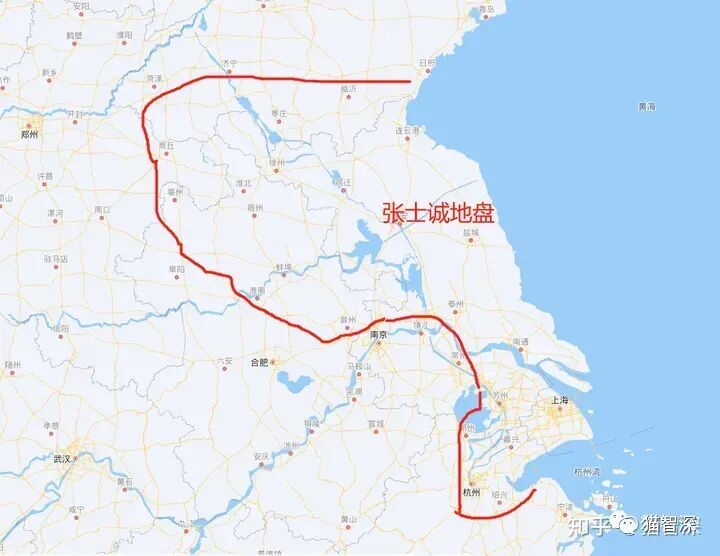 张士诚的地盘,北边到山东济宁,南边到杭州和绍兴