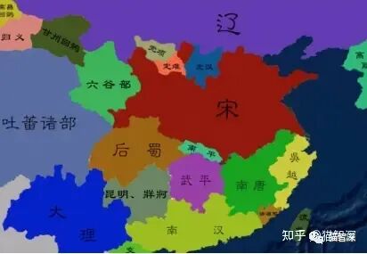这是一张宋初的地图,李煜的南唐跟日后朱元璋的高度重合,吴越的钱家则跟张士诚差不多。
