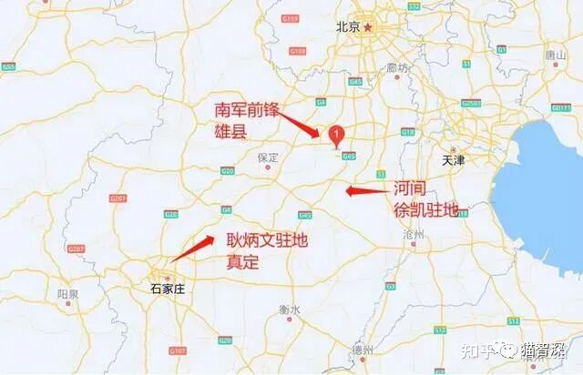 八月八日,耿炳文主力常山赵子龙的故乡--河北真定(治所在今日的正定县,书记曾在此担任县委书记),另派两个军区司令潘忠和杨松率领的先头部队驻扎在鄚州(今属雄安新区),其前锋九千骑兵已占据雄县。另外还有沐英的副手徐凯带着云南兵驻扎在河间。