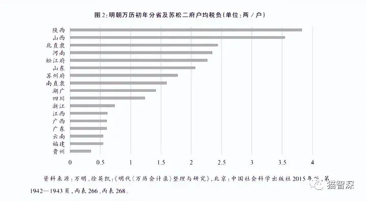 尤其是陕西和山西,竟然比富甲天下的松江府人均税负分别要高69%和56%。