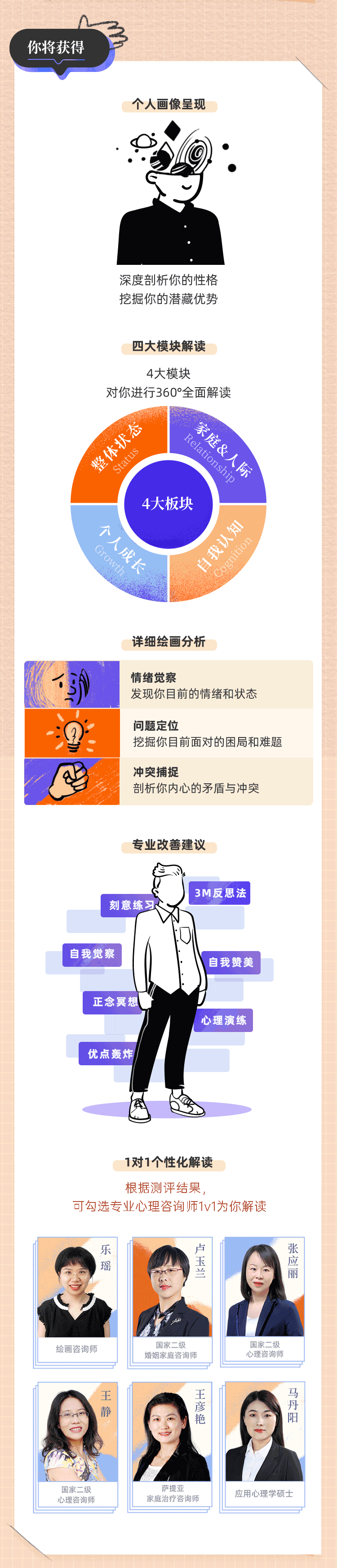 (2)4大模块解读:从整体状态、家庭&人际关系、个人成长、自我认知4大模块,对你进行360°全面解读