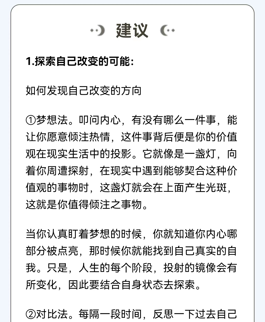 因为原生家庭和后天经历的差异,每个人潜意识隐藏的自己也有所不同,如果你还希望有更深入的个性化分析,我们推荐你可以和咨询师进行1V1深度咨询~