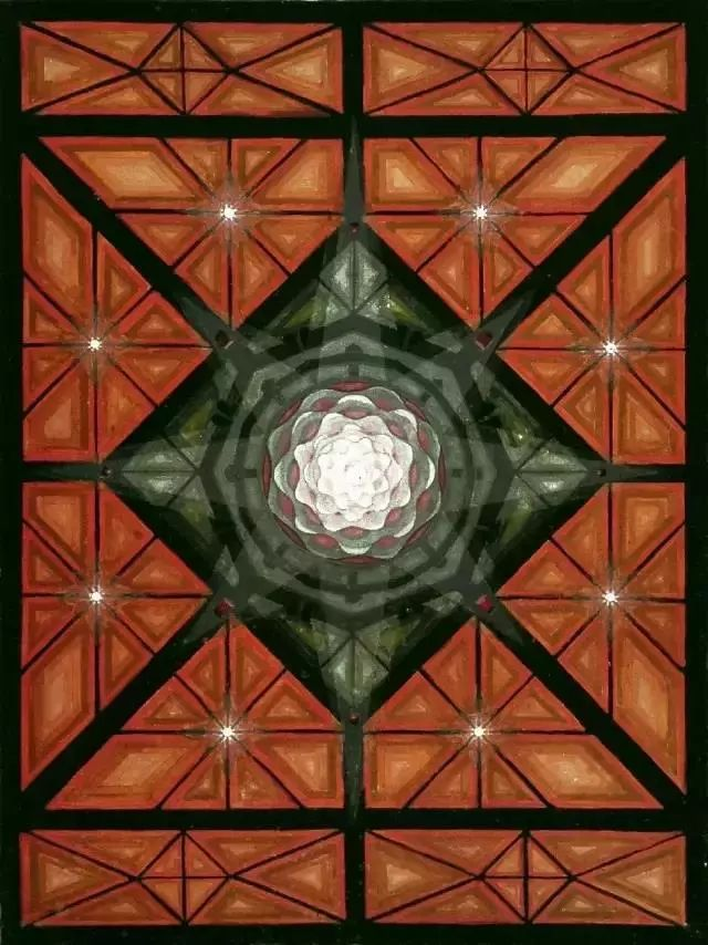 《永恒之窗》:这幅画包括了花、星星、圆圈,把画面分成由中心向外周辐射的布局。整体看起来,如同一扇朝向永恒的窗。