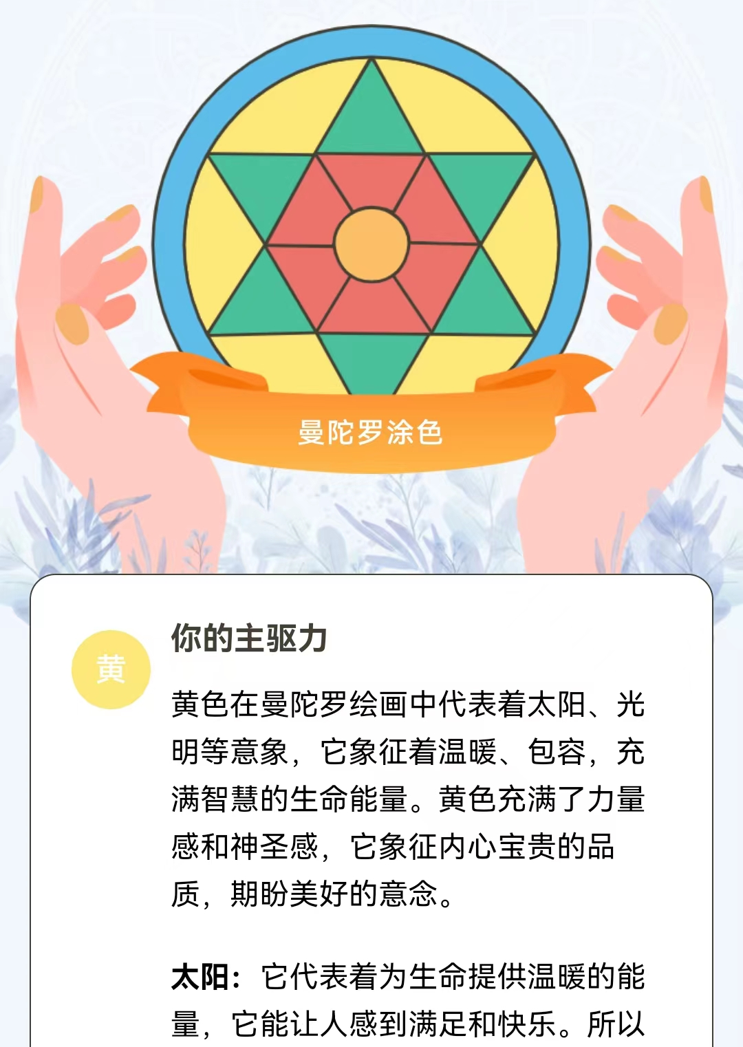 曼陀罗绘画里,不同颜色代表着绘画者不同的想法和感受。涂色过程中,你内心的无意识冲突,都将通过色彩变得具象化: