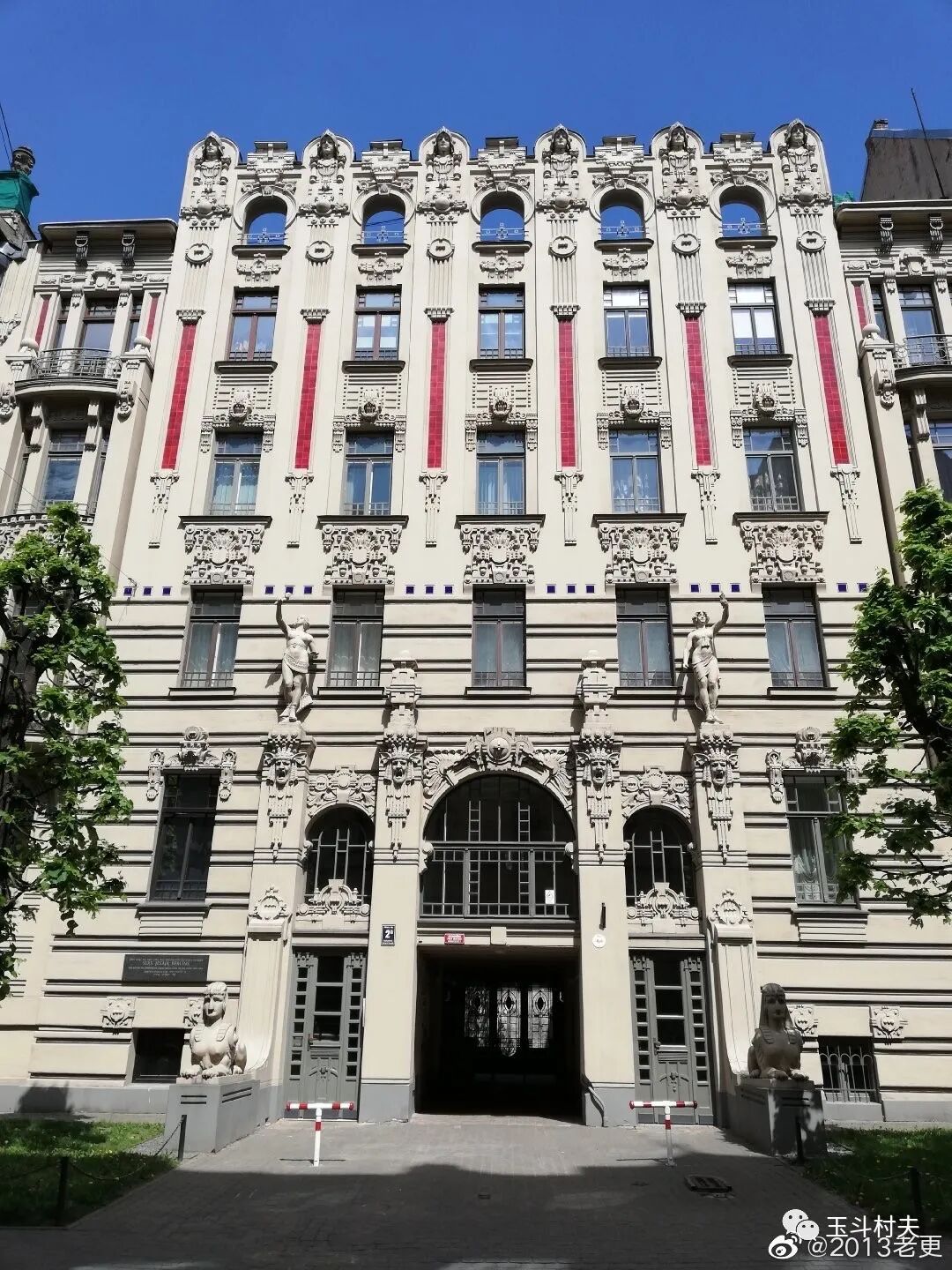 最让拉脱维亚人引以为傲的是,这里有十九世纪末20世纪初拉脱维亚最著名的欧洲新艺术风格建筑群。新艺术风格建筑强调将视觉艺术的各个方面,包括绘画、雕塑、建筑、平面设计及手工艺等与自然形式融为一体,强调自然中不存在直线和平面,装饰上突出表现曲线和有机形态。