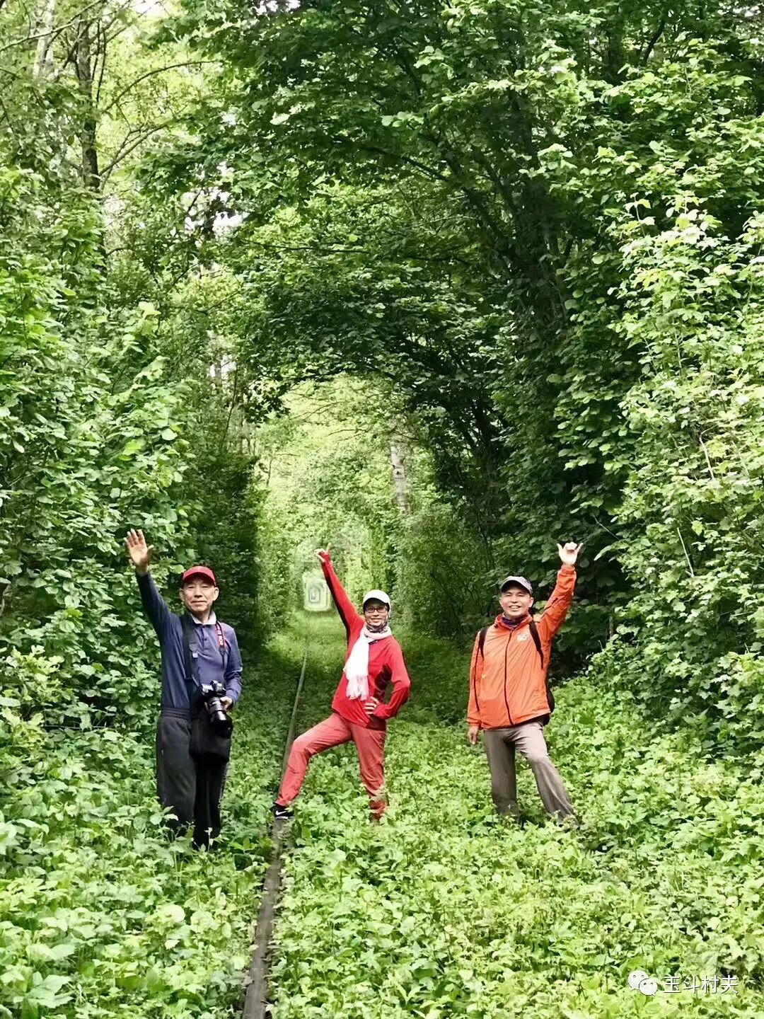 5月27日早餐后驱车350多公里前往乌克兰小镇克莱旺。这里有国内网红、著名的“爱情隧道”。网民评论它是这个星球上最漂亮的火车道,据说被列入“世界十大最佳摄影留念景观”。实际上它是一家偏僻工厂的铁路专线,导游介绍早先是运输木头的,后来逐渐废弃,现在这条专线偶尔也作为交通运输用。由于地处沼泽地,适宜各类植物生长,树木藤类植物生长茂盛,久而久之铁路专线被自然植物完全包裹,形成现在这样世界独一无二的景观。