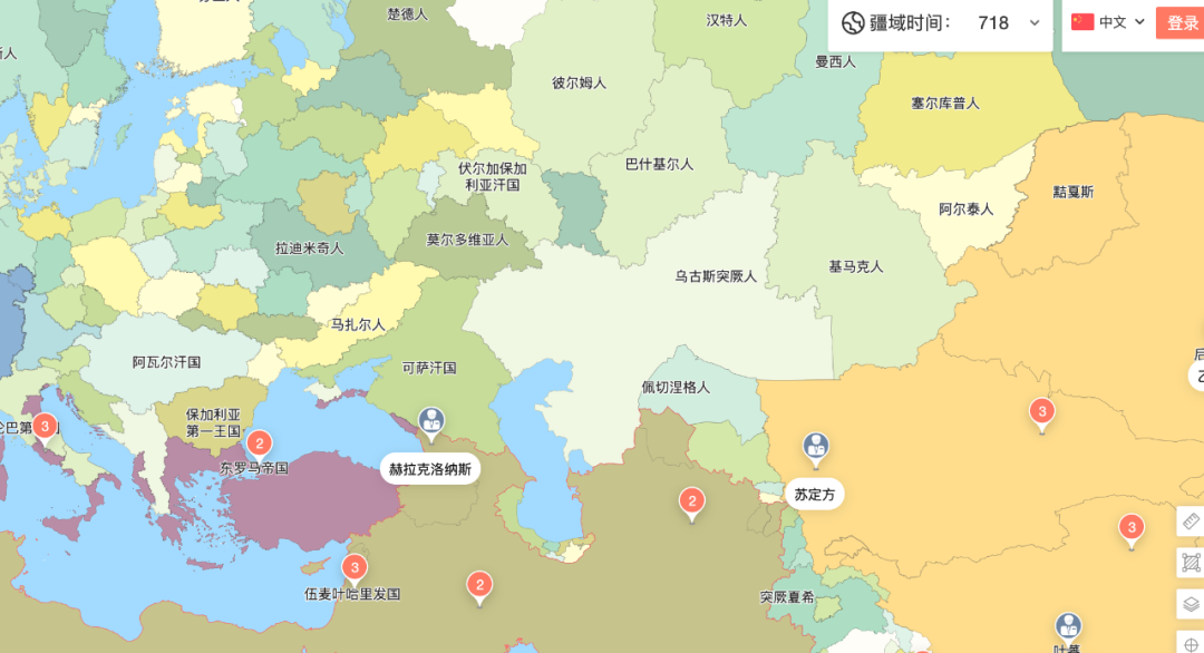 公元718年欧亚地区形势图