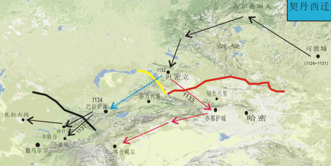 辽国灭亡之时,耶律阿保机八世孙耶律大石率领一部分契丹人穿过塔里木盆地,征服中亚的喀喇汗王朝,打败塞尔柱人军队,让塞尔柱人势力退出中亚,建立西辽,伊斯兰世界称之为喀喇契丹,意思是黑契丹。