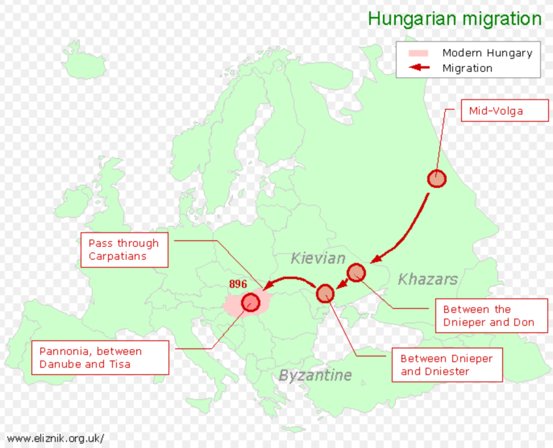 不管怎样,9世纪初,马扎尔人到达顿河和第聂伯河地带,9世纪末出现在了潘诺尼亚地区,这里曾有两个游牧民族在此建立国家,一个是匈人,一个是阿瓦尔人,这次该轮到马扎尔人了[iv],并且马扎尔成功扎根,由一个游牧民族变成了一个农耕民族,还皈依基督教,具体马扎尔人是怎么做到的呢?