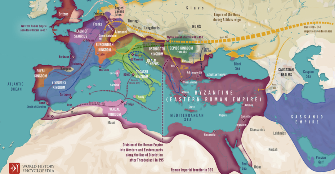 提起匈人,与他联系密切的另外一个词条就是欧洲民族大迁徙,具体情况一般认为是这样的。