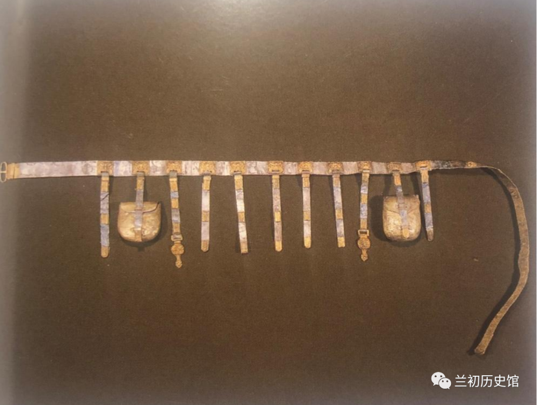 腰间有䩞鞢带,中原地区也有束腰的带子,一般没有装饰,而突厥人的䩞鞢带,有饰品装饰,后来这种风格也影响到了唐朝人。突厥人的䩞鞢带长这个样子。