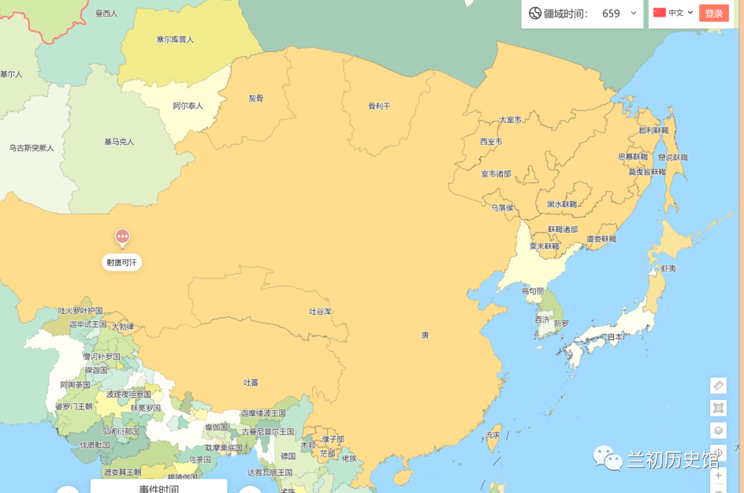 648年设置安西四镇,分别为龟兹、焉耆、于阗、疏勒。