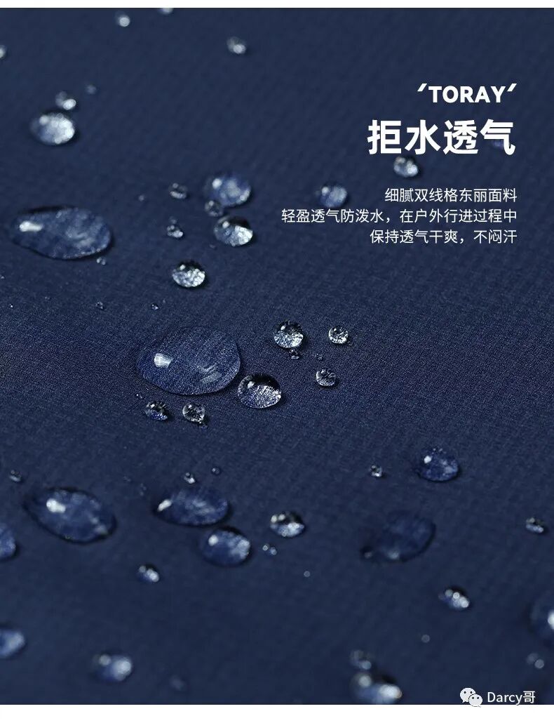 细腻双线格东丽面料,轻盈透气防泼水,在户外行进过程中保持透气干爽,不闷汗。
