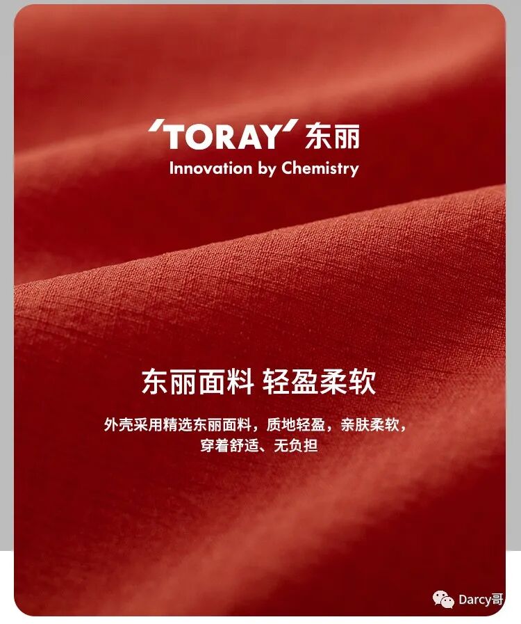 外壳采用精选东丽面料,质地轻盈,亲肤柔软,穿着舒适、无负担。