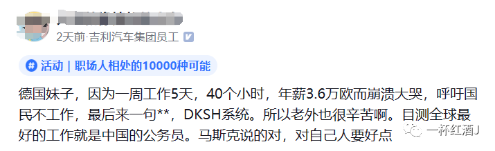 头脑清醒的网友给出了解释:赚欧花欧,3.6万的税前工资在德国只能勉强够生活开支,并不能有很好的生活质量。收入水平与国内的职场打工人相差不多,不过30天的年假和8小时工作制可能优于国内的部分岗位。